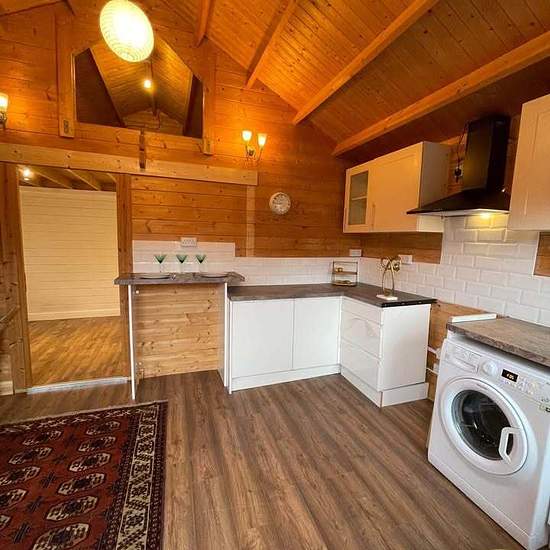 Partially furnished 1 bed room cabin with 1 en-suite bathroom and living room with open plan kitchen. All bills include part from electricity. Small front garden/ yard. Electricity: meter top up. Approximately £50-60 a month. * ideal for one person but two people can be possible* ‼ No more than two people