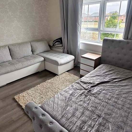 Private room for rent Kettering, UK New build house. Big double room, with new double bed and new mattress. Expandable sofa. New build site, parking is available 2 dogs in the house have allergies for a cigarettes. For non smoking person, no exceptions. Russian speaking. 550, bills included.