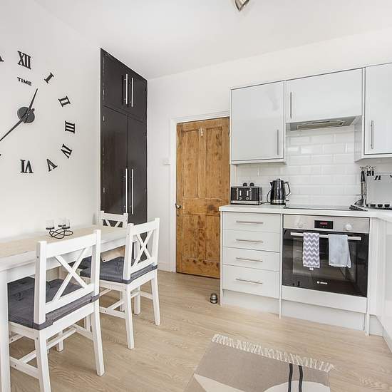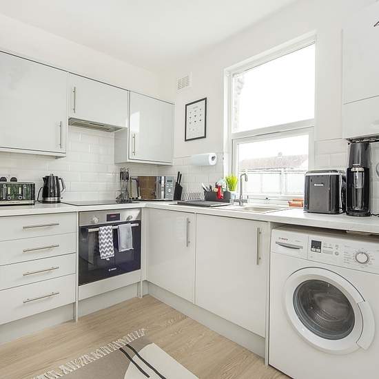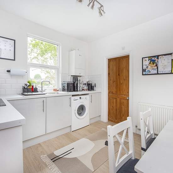 SHORT LET A fully modernised first floor maisonette with it's own entrance and a private garden. The flat was recently refurbished throughout and has a contemporary kitchen and bathroom, new flooring, radiators and windows and is neutrally decorated. This is a great sized one bedroom flat, conveniently located for commuting and offered for a maximum of 6 months. To check broadband and mobile phone coverage please visit Ofcom here ofcom.org.uk/phones-telecoms-and-internet/advice-for-consumers/advice/ofcom-checker Situation The property is si...