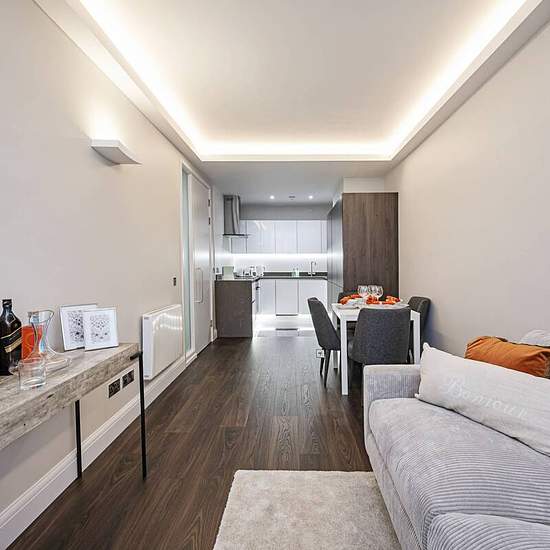 Immaculate 1st floor flat Open plan reception with space to dine Kitchen with integrated appliances Stunning bedroom with fitted wardrobe A modern bathroom Porter Secure development Central location Set in a secure development, a desirable 1 bedroom flat offers simplicity with luxe finishes. Offers a modern reception with large windows for a well lit interior. Perfectly located in central London. Lawrence House is a secure development located within central London. A delightful array of shops, bars and restaurants are within easy reach. Tran...