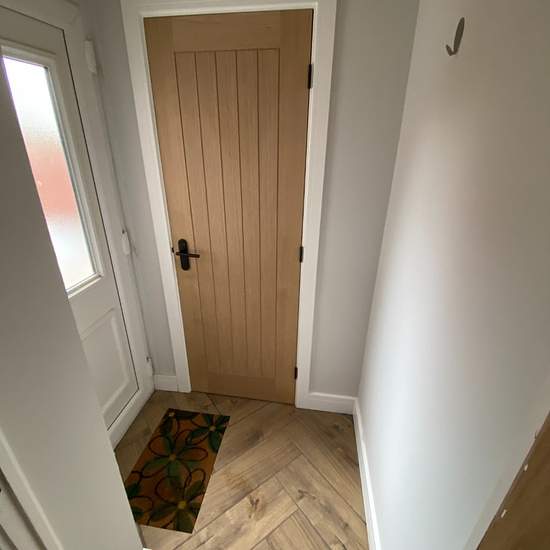 NEUE KÜCHE NEUES EN-SUITE-BAD NEUE EICHHOLZTÜREN IM GANZEN HAUS FISCHGRÄT-FLIESEN IN HOLZOPTIK VOLLSTÄNDIG RENOVIERT NEUE TEPPICHE NEUE SOCKELLEISTEN UND TÜRUMRANDUNGEN VERFÜGBAR ANFANG JANUAR Eingangshalle (1,3 m x 1,1 m) mit Kunststofftür (uPVC), Garderobenplatz, eingelassenem Türvorleger auf gefliestem Boden, Eichenholztür zu: Gäste-WC (1,3 m x 1,2 m) mit Toilette, Fischgrät-Fliesen in Holzoptik auf dem Boden, WLAN-Heizung, Eckwaschbecken, Sicherungskasten und kleinem Kunststofffenster zur Vorderseite. Eine weitere Tür von der Eingangsha...