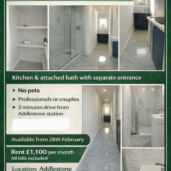 1-Zimmer-Wohnung verfügbar ab 7. März Bett Kleiderschrank Tisch Küche Badezimmer mit Dusche Parkplatz Separater Eingang Erdgeschoss Waschmaschine Kühl-Gefrierkombination. Dies ist ein Anbau. Nebenkosten nicht inbegriffen Die Wohnung ist groß genug für eine Person, Paare sind aber willkommen. Lärm auf ein Minimum reduzieren, da ruhige Nachbarschaft. Wir suchen saubere Personen. Hintergrund- und Bonitätsprüfungen werden durchgeführt. Kaution: £1.000 Fotos werden bald hochgeladen.