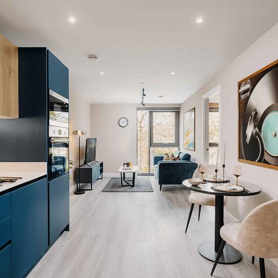 Moda, Loudon's Yard offers 398 brand-new, interior-designed rental homes with state-of-the-art amenities, including a 24-hour gym, co-working space, private dining room, concierge, security, and a one-acre landscaped garden. Residents also benefit from secure parking, cycle storage, free superfast Wi-Fi, pet-friendly options, and deposit alternatives for a hassle-free move-in experience. This stylish studio apartment features a modern open-plan layout with a cosy living and dining area, a sleek fitted kitchen with quartz worktops and integr...