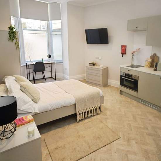 Property Features **AVAILABLE SEPTEMBER** New build luxury apartment in the heart of Bournemouth town centre **ALL BILLS INCLUDED WITH RENT** Available for professionals, post graduates and students Spacious furnished contemporary studio apartment with luxury en-suite Rent includes wifi, electricity, water rates and gas Fully furnished including TV, fridge freezer, cooker, bed, desk and chair Perfect location within walking distance of Bournemouth's award winning beaches, shops, bars restaurants and Univeristy bus stop Communal laundry room...