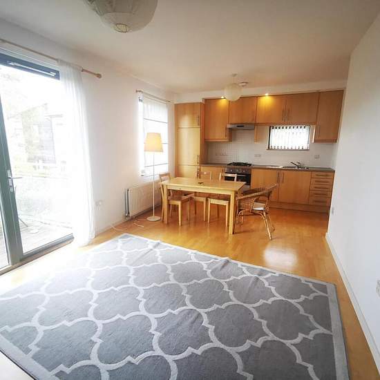 Eine stilvolle Ein-Schlafzimmer-Wohnung im Obergeschoss steht zur Miete und wird teilmöbliert angeboten. Der Eingang führt in einen hellen offenen Wohn- und Küchenbereich, ausgestattet mit einem eingebauten Kühl-Gefrierschrank, einem Ofen und einem Kochfeld. Zusätzlich gibt es einen separaten Hauswirtschaftsraum. Die Wohnung verfügt über ein gut geschnittenes Schlafzimmer und ein modernes Badezimmer; französische Türen führen auf einen privaten Balkon, ideal zum Entspannen im Freien. Weitere Vorteile sind ein zugewiesener Abstellschrank und ...