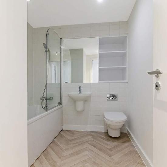 One bedroom flat in modern shared block of flats. Separate bathroom including bath with shower over. Large open plan kitchen living and dining room with space for dining room table and sofa/seating area. Balcony window. Electric heated with energy efficiency/EPC C