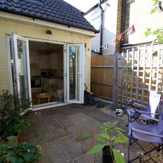 Lovely split-level studio with private rear court yard, sleeping/living area upstairs, modern kitchen downstairs with all appliances and shower room. Located in a quiet cul-de-sac just off Hampton Hill High Street by Bushy Park. The upper floor provides a bright, airy space for living and sleeping. Downstairs features a spacious wet-room style bathroom, fitted kitchen with all appliances, underfloor heating and access to a private rear courtyard through french doors. The location is ideal – close to the bus links and shops, bars and restaur...