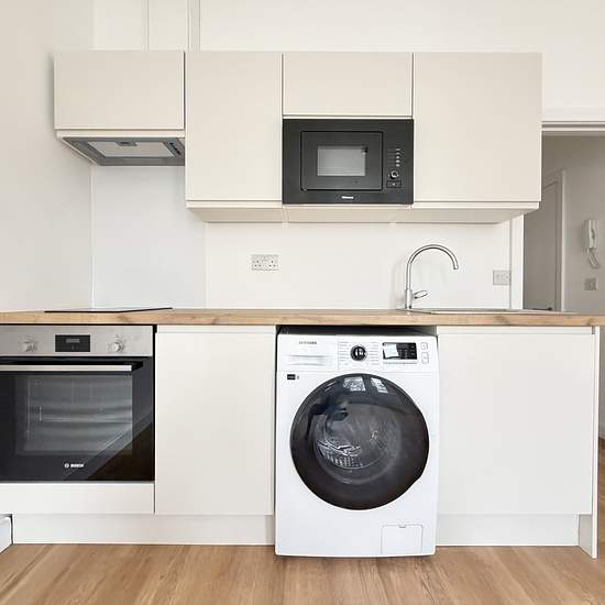 Neu renoviert | 1. Stock | Moderne Ein-Schlafzimmer-Wohnung Eine schön renovierte Wohnung im 1. Stock mit einem Schlafzimmer, die durchgängig helles, zeitgemäßes Wohnen bietet. Fertiggestellt in ausgezeichnetem Zustand, ist dieses stilvolle Zuhause perfekt für einen berufstätigen Mieter, der modernen Komfort in gepflegtem Umfeld sucht. Die Immobilie verfügt über einen großzügigen offenen Wohnbereich mit großen Erkerfenstern, die den Raum mit Tageslicht durchfluten. Der Wohnbereich geht nahtlos in eine neu eingebaute Küche über, ausgestatte...