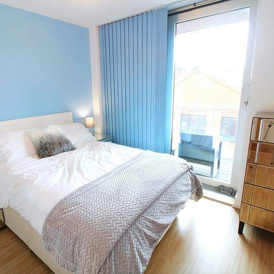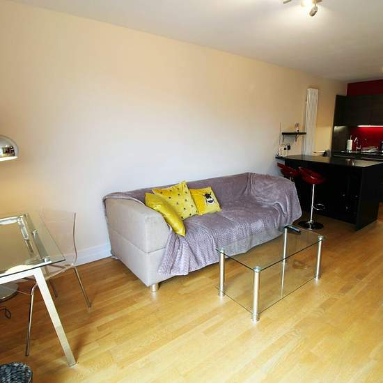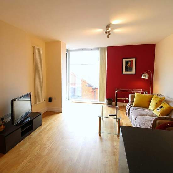 Luxury high quality apartment in the Highcross shopping centre at the heart of the city centre with an exclusive balcony, modern fitted kitchen with appliances, good size double bedroom, well-presented living space and modern bathroom. Experience the benefit of city centre living to the full with all the amenities you need right on your doorstep. KITCHEN Black and red kitchen fully equiped with cooker hobs, oven, microwave, fridge freezer. Lounge Large lounge area furnished with laminate flooring and access to the balcony. Bedroom Beau...