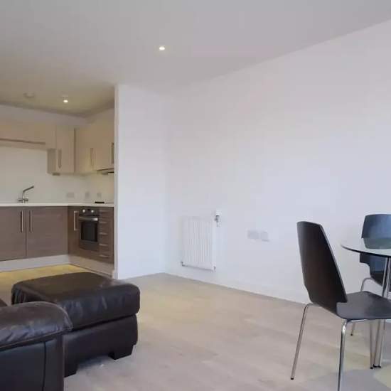 A stylish 1-bedroom flat with a balcony is for rent in Tower Hamlets. The flat has a sunny living room, where you can relax on the cozy couch and watch TV, sit down to a delicious meal at the dining table, or step outside onto the lovely balcony for some fresh air on a nice day. The modern kitchen has all the essentials, including an oven and a 4-burner stove. The bedroom has lots of natural light, and it is well-furnished with a large double bed, access to the balcony, and plenty of storage space for all your things. In the bathroom, you'll...