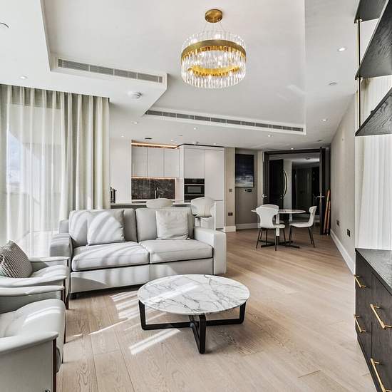 A spectacular and brand new one bedroom apartment located within this state of the art luxury development commanding west-facing views in Kensington. The accommodation comprises an open plan kitchen / reception room with private balcony, master bedroom, family shower, and a separate utility room. Further benefits include hard wood floors in the principle rooms and an abundance of bespoke joinery throughout. It is very stylish and comes with designer furniture. Sherrin House offers residents a five-star hotel style concierge service with 24-h...