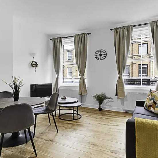 Furnished 1-bedroom apartment for rent on Norfolk Place. The property includes tv. This one bedroom is situated in the idyllic area of Paddington. Located on the 2nd floor, this beautiful London flat can comfortably accommodate up to two people. The smoke-free property features a living room, one bedroom, a bathroom, and a kitchen. The living room is equipped with a comfortable sofa, a dining table and a Smart TV. The kitchen is fully equipped with modern appliances and includes all cooking utensils that you could need when preparing a quick...