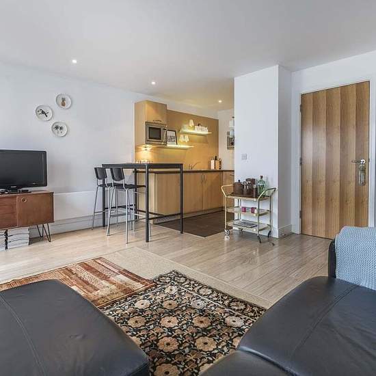 A stunning one bedroom property located on the third floor of the desirable Meridian Court development in Bermondsey. The open-plan living and dining area is bathed in natural light thanks to the door that leads onto a private balcony that provides views of the surrounding area. The kitchen is designed with style and functionality in mind, boasting ample counter top space and integrated appliances including a fridge-freezer, dishwasher and oven. The kitchen seamlessly flows into the living area, creating an open and airy feel. The generou...