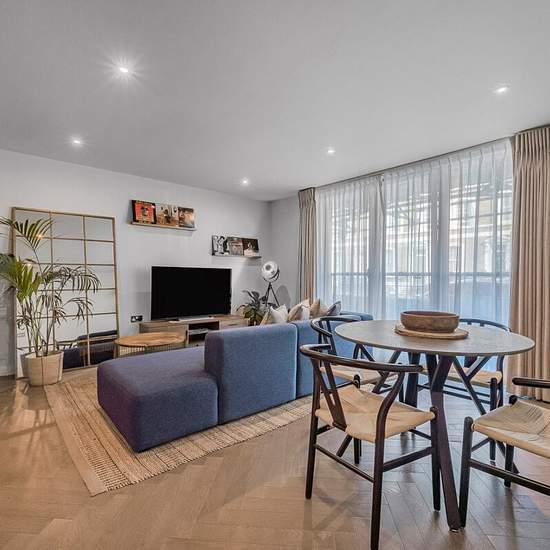 A bright and spacious one bedroom apartment, finished by the current owners to an exacting standard, set on the ground floor of a popular secure modern development. The apartment is bright and well-proportioned with a semi-open plan kitchen/living space which has been lovingly modernised with a contemporary kitchen, solid wooden flooring and aesthetically pleasing finishing; the bathroom is modern with loft style finishing including Crittall style shower screening and black finishing; the bedroom offer copious amounts of storage space and co...