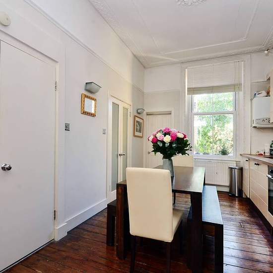 Beautiful ground floor flat in period conversion Lovely reception room with adjoing kitchen Good-sized bedroom with integrated storage Stylish shower room Well presented throughout with original flooring Enviable location close to an array of local amenities Boasting high ceilings and period features, this charming 1 bedroom ground floor flat is excellently located and offers spacious accommodation with a fantastic eat-in kitchen leading to a bay-fronted reception room. The property is well situated for the range of shops and eateries along ...