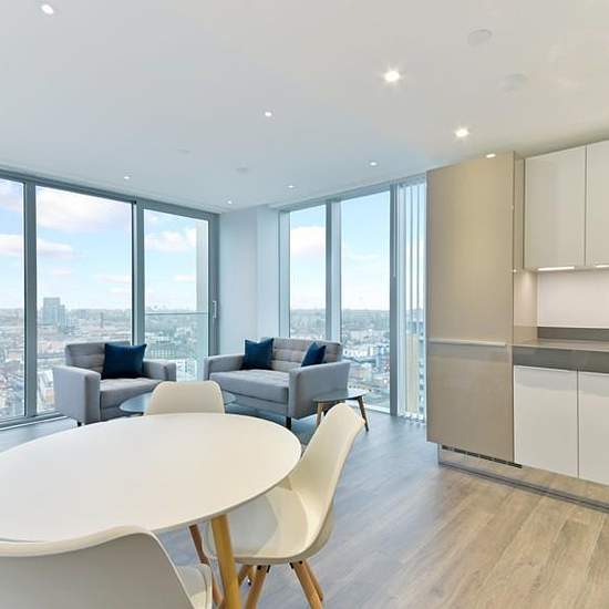 Available 31st March. A sophisticated and contemporary one-bedroom apartment in Meranti House, part of the iconic Goodmans Fields development. This beautifully designed home offers a spacious double bedroom with bespoke fitted wardrobes, a luxurious bathroom with underfloor heating, and a bright open‑plan living area. The high‑spec kitchen features premium integrated appliances, sleek cabinetry, and elegant worktops, complemented by wooden flooring throughout the hallway and lounge. Residents enjoy exceptional amenities, including a gym, hea...