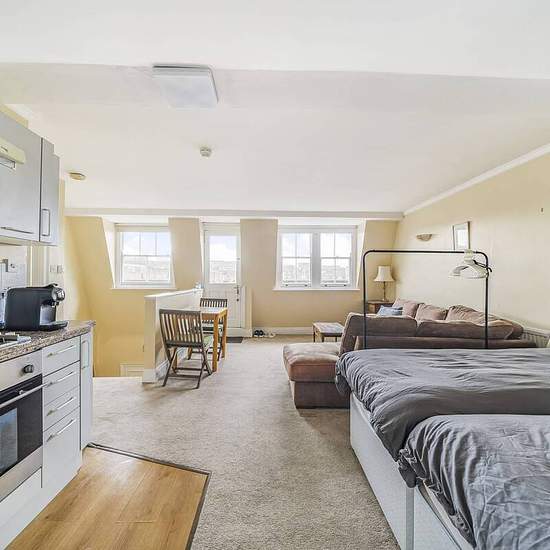 Lovely 5th floor studio flat Generous living space Bright throughout Private balcony Close to amenities and transport links Well equipped kitchen Excellent location Available with Zero Deposit Set on the 5th floor of a period conversion, this lovely 5th floor studio benefits from bright living space, a private balcony and an excellent central location in South Kensington. Gloucester road is host to a fantastic range of amenities, cafes restaurants as well as Gloucester Road station.