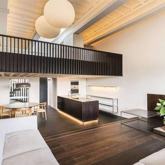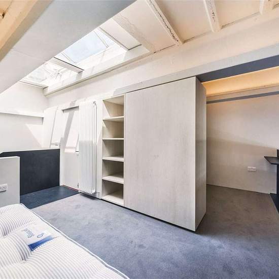 Eine spektakuläre Ein-Zimmer-Wohnung im ersten Stock dieses exklusiv umgebauten Geschäftsgebäudes. Diese zeitgenössische Umgestaltung erstreckt sich über zwei Ebenen und bietet außergewöhnlichen Platz zum Empfangen von Gästen; schöne doppelhohe Decken und Holzfußböden machen sie ideal für offenes Wohnen. In neutralen Farben gehalten herrscht im gesamten Apartment ein beeindruckendes Gefühl von Licht und Raum, wobei der Hauptwohnraum über große Fenster mit Blick auf die Themse verfügt. Die moderne Küche besitzt eine große Insel mit Arbeitspla...