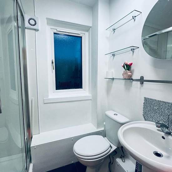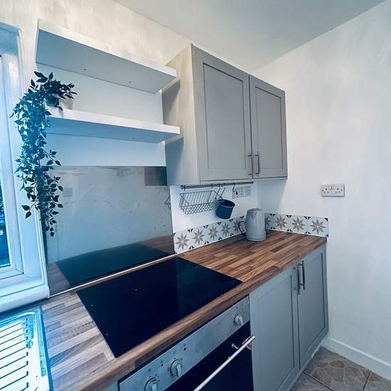 One bedroom open plan flat - studio with separate kitchen and bathroom Electric only - cheap overall bill Ground floor 5 mins from Braehead Landlord Registration 1098803/260/29081