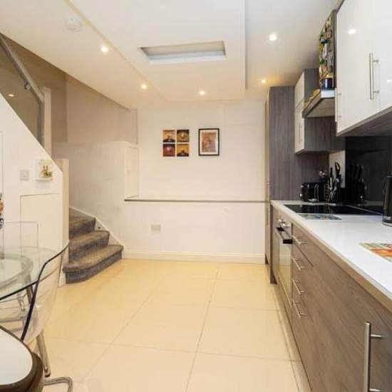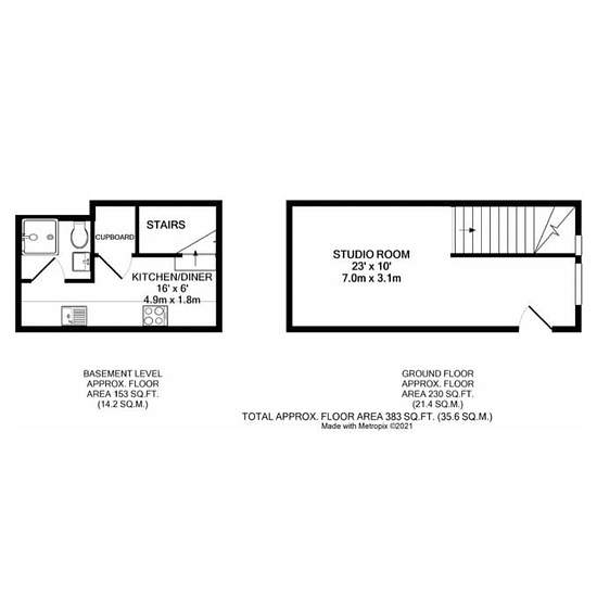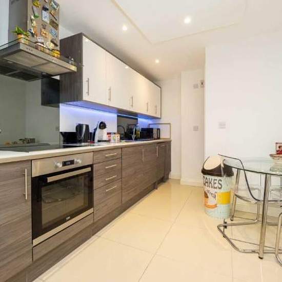 Short or long term. All bills included. Double bed, sofa, dining table included. An unusual and highly unique ground floor split level 'duplex' studio apartment, only 7 years old and in superb order, in an excellent order throughout. What makes this apartment totally different and appealing is the lay-out of the accommodation (check out our floor plan) The main part of the flat is the 23'0 x 10'3 studio room providing ample sleeping and living space from which stairs lead down to a separate 16'0 x 6'0 (minimum) kitchen/dining room wit...