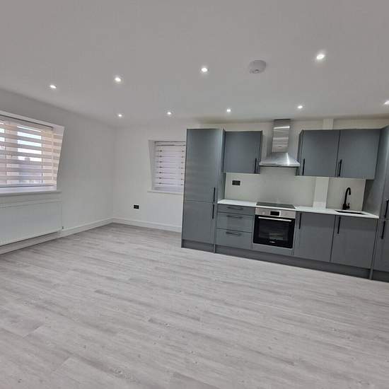 Be the first to make your home in this first floor new apartment in the heart of Biggin Hill comprising an open-plan lounge/kitchen, double bedroom and bathroom; own front door. Be the first to make your home in this first floor new apartment in the heart of Biggin Hill. The property comprises an open-plan lounge/kitchen with fitted wall and floor mounted units with integrated fridge freezer, oven, hob and extractor hood and washing machine, marble effect worktop and splashback, a double bedroom and a stylish contemporary bathroom with sho...