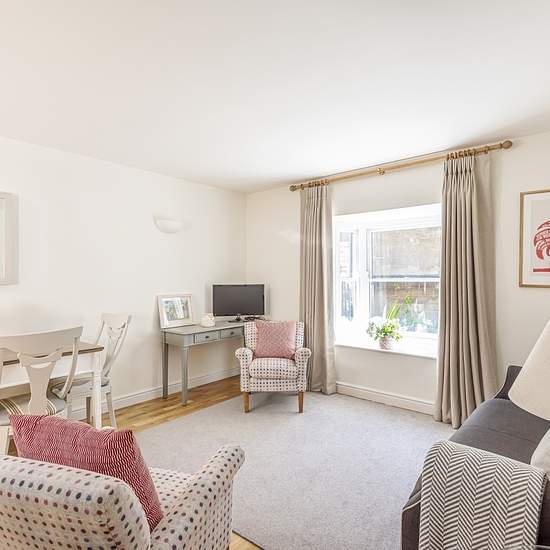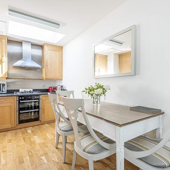 All-inclusive Kurzzeitvermietung Diese schöne Immobilie erstreckt sich über zwei Etagen mit je einem Schlafzimmer und Badezimmer auf jeder Etage sowie einem praktischen Hauswirtschaftsbereich im hinteren Teil des Erdgeschosses. Der Küchen-/Wohnbereich ist offen gestaltet und bietet einen komfortablen Essbereich sowie eine gemütliche Sitzgelegenheit an beiden Seiten eines großen Erkerfensters mit Blick auf die Bathwick St Marys Kirche und in der Ferne die Bath Abbey. Die maßgefertigte Ahornküche, ergänzt durch Arbeitsflächen aus schwarzem Gr...