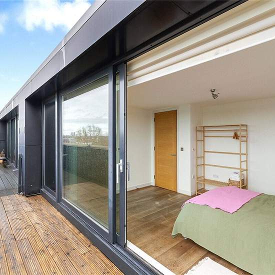 John D Wood & Co. Chiswick Lettings are pleased to pesent to rent this superb, split level, two bedroom Penthouse set within a private and gated development. Arranged over the fourth and fifth floors, this property offers two double bedrooms; two balconies; two bathrooms; separate WC and wooden floors throughout. On the upper level, there is a bright and spacious open plan reception which looks out on to a stunning view of the River Thames and Hammersmith Bridge. The development boasts an on-site porter and is gated. Bazalgette Court is idea...