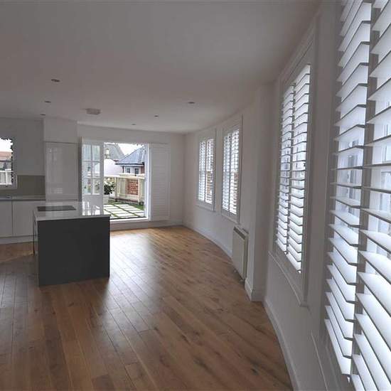 A recently converted high quality Duplex is being offered with a south facing enclosed roof garden. With a very distinctive curved living accommodation that comprises 2 bedrooms, one with en-suite, and separate shower room all on the second floor. The first floor has open plan living room, kitchen and dining area with double doors directly onto the glorious roof garden. All heated by efficient storage heaters and electric radiators. The kitchen comes complete with d/w, w/m, f/f, d'oven and hob. The windows to all principal rooms are shuttere...