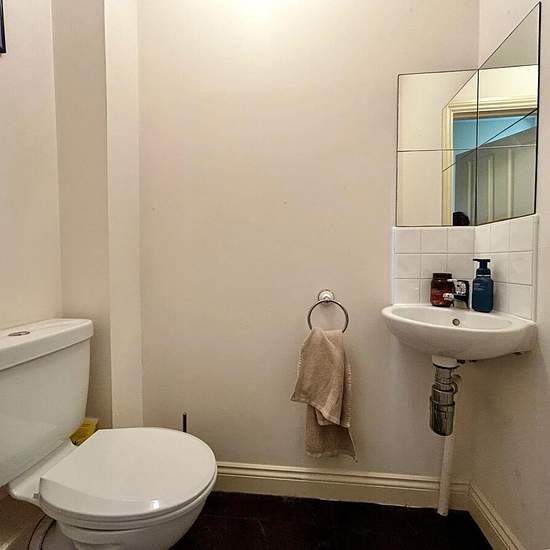 The property features a welcoming entrance hall with a handy downstairs WC, leading into a bright open-plan lounge and kitchen, ideal for relaxing or entertaining. French doors open directly onto the rear garden, perfect for enjoying warmer months. Upstairs, there are two comfortable bedrooms along with a modern bathroom. Outside, the property also benefits from off-street parking for added convenience. EPC rating: C. Council tax band: B, Domestic rates: £1817,