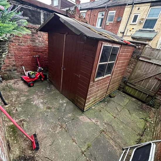 2 bedrooms, a living room, kitchen and 1 toilet with decent amount of space at back including a shed (can be used for storage). Spacious kitchen and living room.
