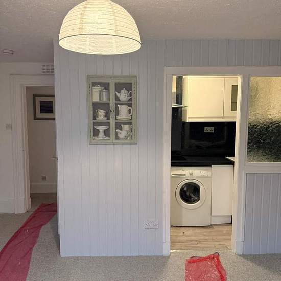 2 bed ground floor flat. X1 double room, X1 single room. Open plan lounge with small kitchen. Bathroom - Bath with power shower, heated towel rail. Modern fitted kitchen. New double glazing and floor coverings throughout. GCH REFERENCES, DEPOSIT REQUIRED.