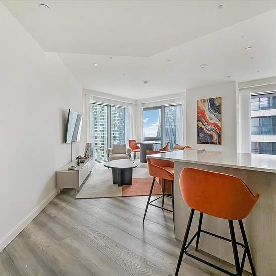 Knight Frank are pleased to offer this 19th floor apartment located within the Aspen development. The apartment is set over approximately 80.61 sq m (approximately 868 sq ft) and comprises reception room, open plan fully fitted kitchen with breakfast bar, principal bedroom with fitted wardrobes and en suite, second double bedroom with fitted wardrobes, utility room and guest bathroom. The apartment is offered on a furnished basis. EPC: B Aspen at Consort Place is a mere 9 minutes’ walk from Canary Wharf London Underground and Elizabeth Line...