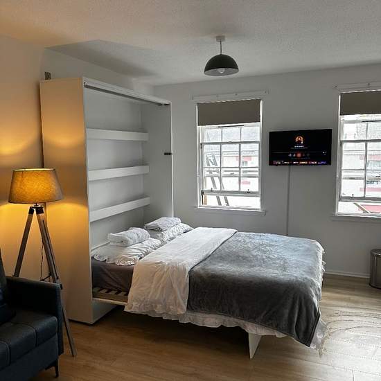 Wohnung im Stadtzentrum (Postleitzahl EH1) zur Miete verfügbar. Sie verfügt über ein Doppelzimmer und zusätzlich ein Murphy-Bett im Wohnbereich, sodass bequem zwei Erwachsene aus verschiedenen Familien schlafen könnten. Verfügbar ab dem 31. Januar 2026.
