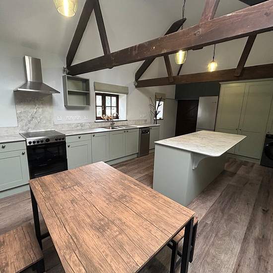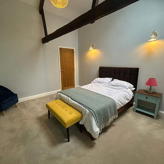 Zero-Deposit-Garantie verfügbar Die Immobilie verfügt über beeindruckend hohe Decken und durchgehend freiliegende Holzbalken, die ein wunderbares Gefühl von Raum und Charakter schaffen. Der offene Wohnbereich ist hell und einladend, während große Fenster den Blick auf die umliegende Landschaft rahmen und das Zuhause mit natürlichem Licht durchfluten. Beide Schlafzimmer sind großzügig geschnitten und durchdacht angeordnet und bieten ruhige, komfortable Rückzugsorte zum Entspannen. Die charakteristischen Merkmale der Scheune werden durch ein...