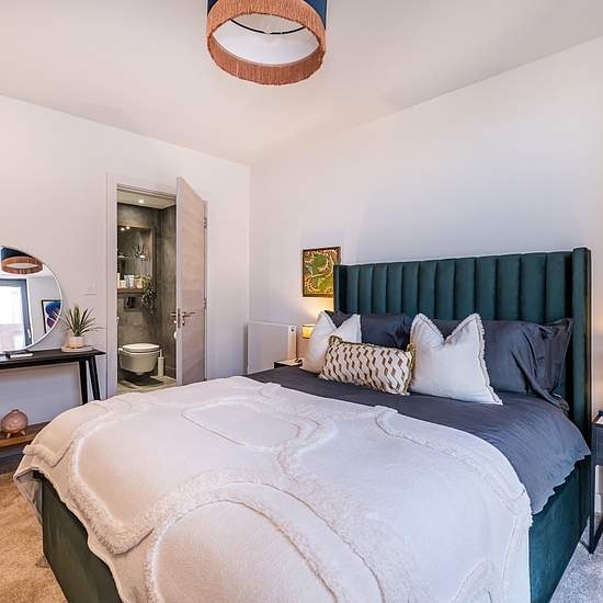 10% Nachlass auf Ihre Miete für die ersten 12 Monate Die Zwei-Schlafzimmer-Wohnungen verfügen über einen offenen Wohn-, Küchen- und Essbereich mit bodentiefen Fenstern. Die elegante Küche ist mit Quarz-Arbeitsplatten, integrierten Geräten und einem Marmoreffekt-Esstisch für vier Personen ausgestattet. Der gemütliche Wohnbereich bietet ein komfortables Sofa, einen 50"-Samsung-4K-Fernseher und stilvolle Einrichtung. Beide Schlafzimmer verfügen über Einbauschränke, Ottomanenbetten mit Stauraum und luxuriöse Taschenfederkernmatratzen. Das en-su...
