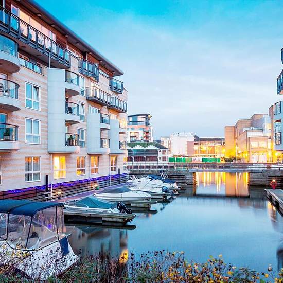 Entry leads to a generous open-plan kitchen and reception area, opening onto a south-facing balcony that captures spectacular riverside scenery. The principal bedroom features an en suite bathroom, fitted wardrobes, and direct balcony access. A second double bedroom with built-in wardrobes and a stylish guest bathroom completes the accommodation. Perfectly positioned close to Hampton Wick Station and the town centre, the property further benefits from a concierge service and secure underground parking. Marina Place is located on the banks o...