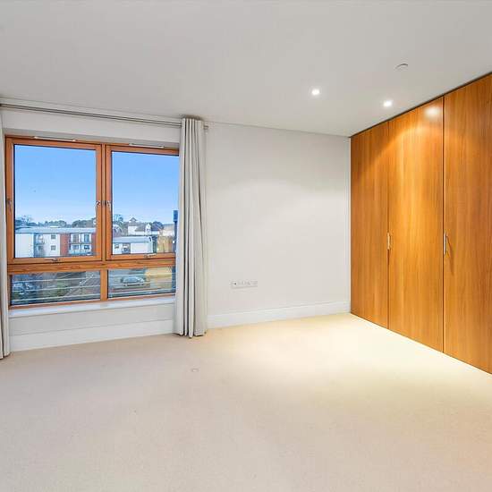 Entry leads to a generous open-plan kitchen and reception area, opening onto a south-facing balcony that captures spectacular riverside scenery. The principal bedroom features an en suite bathroom, fitted wardrobes, and direct balcony access. A second double bedroom with built-in wardrobes and a stylish guest bathroom completes the accommodation. Perfectly positioned close to Hampton Wick Station and the town centre, the property further benefits from a concierge service and secure underground parking. Marina Place is located on the banks o...