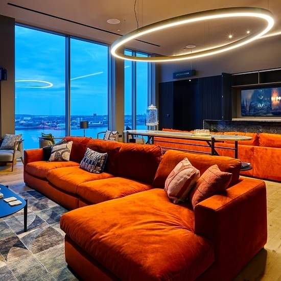 Located on Liverpool waterfront with epic views over the Three Graces and River Mersey, Moda, The Lexington is the most sought-after place to live in the city! 325 interior designed rental apartments set over 34 storeys. Exceptional 24-hour services from concierge and security to on-site maintenance. State-of-the-art amenities include co-working spaces, roof terrace with BBQ area and kitchen, plus residents' gym. Head to level 17 for the private dining room, sky lounge, cinema, and games room. This premium penthouse features a bespoke kitc...