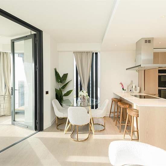 2B2B | 50th-Floor Sky Lounge | 24-Hour Concierge | Residents’ Lounge | Gym | Meeting Rooms | Winter Garden | Near Vauxhall & Nine Elms Station Situated on the 27th floor of the prestigious River Park Tower, this two-bedroom, two-bathroom apartment offers refined modern living with sweeping, uninterrupted views across London’s skyline. The bright open-plan reception and dining area is framed by floor-to-ceiling windows, creating a spacious, light-filled environment. A sleek, fully integrated kitchen flows seamlessly into the enclosed winter g...