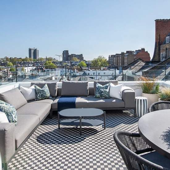 We are delighted to offer a stunning two-bedroom apartment with a large private terrace with spectacular views over Kensington. The apartment is situated within a super prime Georgian building in the heart of the Royal Borough of Kensington & Chelsea. The 1,120 SQ FT apartment is situated on the third floor and comprises an open-plan integrated kitchen, a large reception/ dining room with impressive entertaining space, bi-fold doors leading onto a superb inside/outside private south-facing terrace, two double bedrooms with ensuite bathrooms,...