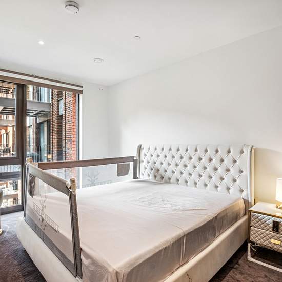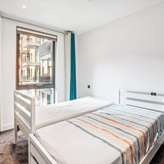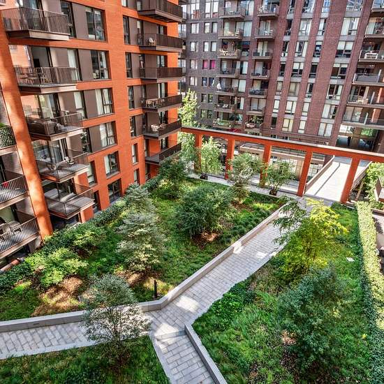 Spacious two bedroom, two bathroom apartment on the fifth floor of Embassy Gardens with a private balcony facing the communal gardens. The apartment features a bright and spacious open plan reception and living which leads out to a large balcony overlooking the shared garden. The apartment further benefits two double bedrooms and two large bathrooms (one is en-suite). Embassy Gardens offers exclusive residents-only amenities like no other in London – including two state-of-the-art gyms, luxurious spa facilities, indoor pool, 24-hour concierg...