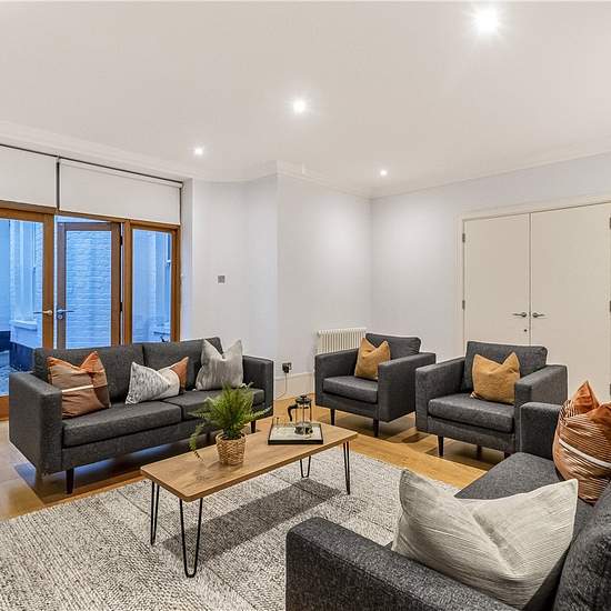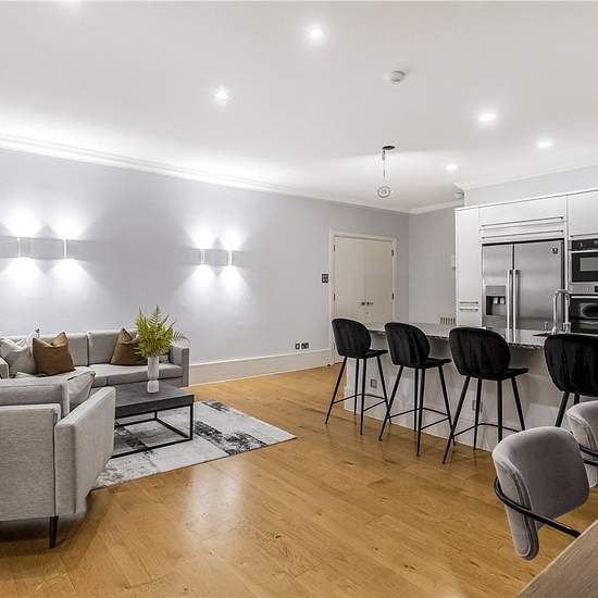Absolutely stunning contemporary garden apartment of 2,045 sq. ft in the heart of Marylebone Village, close to Regent's Park and all the amenities of Marylebone High Street. This apartment offers a fantastic living space with a large eat-in kitchen and separate living room which opens out to a lovely private terrace. The master bedroom has a great en suite bathroom with bath and separate shower cubicle. There is a second bedroom and bathroom. The property is professionally managed by the Howard de Walden Estate. Available for long term renta...