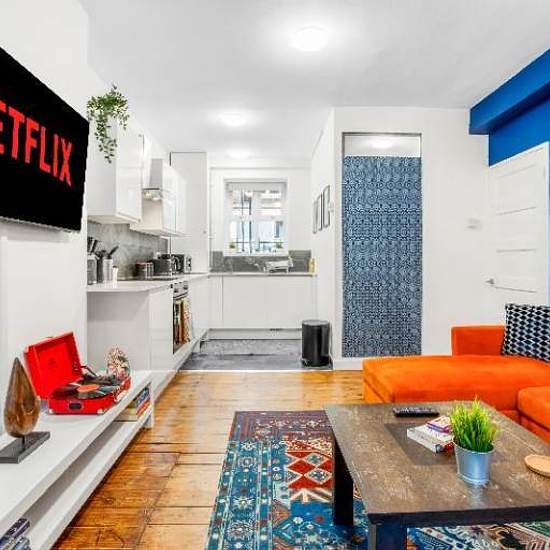 Ground Floor Apartment in Hackney A comfortable, well‑located apartment offering a relaxed base for exploring East London. This bright ground‑floor apartment provides a welcoming home‑from‑home feel in the heart of Hackney. With a cosy double bedroom and a separate living area featuring a sofa bed, the space is ideal for couples, small groups, or business travellers looking for convenience and comfort. Guests can enjoy a fully equipped kitchen, a private balcony, and essential amenities designed to make every stay smooth and stress‑free. ...
