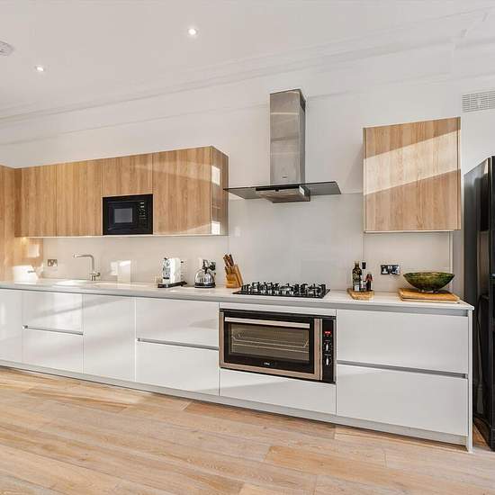 Die Immobilie ist um einen beeindruckenden offenen Wohn-, Ess- und Küchenbereich angeordnet, der sich über mehr als 21 Fuß erstreckt und eine hervorragende Kulisse sowohl für das tägliche Leben als auch für das Empfangen von Gästen bietet. Von großen Fenstern, die auf den Gartenplatz blicken, wird der Raum mit natürlichem Licht durchflutet; er verfügt über Holzböden, hohe Decken und eine elegante, moderne Küche mit Einbaugeräten und umfangreichen Einbauschränken. Das Hauptschlafzimmer liegt ruhig zur Rückseite und profitiert von einem Erker,...
