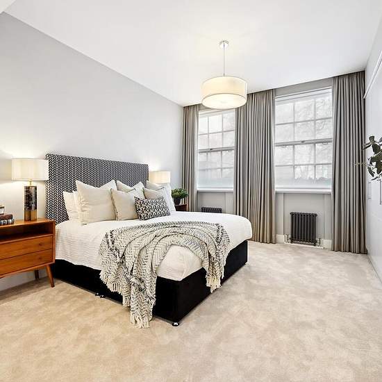 This lateral apartment comprises of two generously sized double bedrooms, both with ample storage space and en-suite bathrooms ensuring the utmost privacy. There is also a large reception room with large windows, flooding the room with natural light. The kitchen contains fully fitted appliances perfect for hosting at any time of the year. Residents also benefit from a communal garden as well as a 24 hour porter. Located in the heart of Mayfair, Grosvenor Square is central to the world renowned shopping districts of Oxford Street, New Bond S...