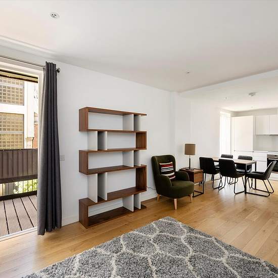 Located on the first floor of recently completed development in Hand Axe Yard, this modern two bedroom apartment comprises a large open plan reception opening onto a private balcony and fully fitted kitchen benefitting from good natural light. The apartment offers a large master bedroom with ensuite, further double bedroom, family bathroom and second private balcony. Residents will also benefit from a daytime concierge service, CCTV security, communal front yard and an on-site residential gym. The property is within a 5 minute walk to King's...
