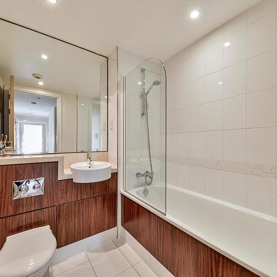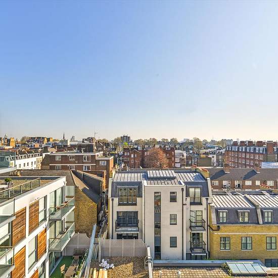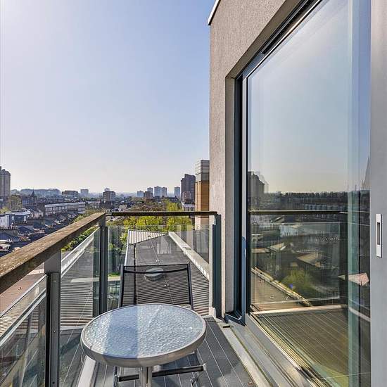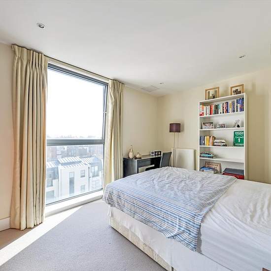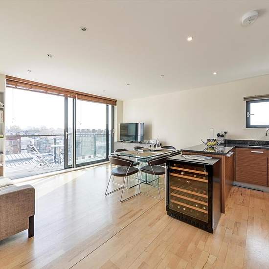 Im fünften Stock dieses begehrten modernen Neubaus gelegen, bietet diese ansprechend präsentierte Zweizimmerwohnung eine gelungene Raumaufteilung und viel Tageslicht. Die Immobilie verfügt über einen großzügigen offenen Küchen- und Wohnbereich mit elegantem Holzfußboden, der ein warmes und zeitgemäßes Wohnambiente schafft. Ein privater Balkon bietet reichlich Platz für Außenmöbel und ist perfekt, um Sommerabende zu genießen und den atemberaubenden Panoramablick auf Londons Skyline zu bewundern. Im hinteren Teil des Gebäudes gelegen, profitie...