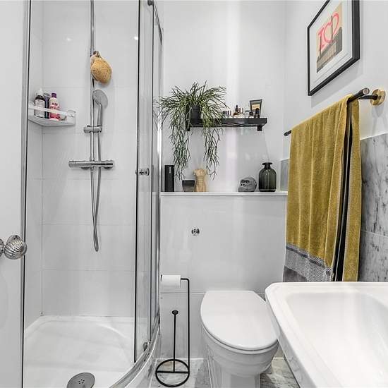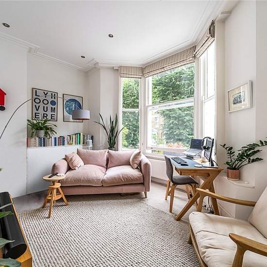 The beautifully refitted kitchen is both stylish and practical, featuring a glass door that opens directly onto the rear garden. The generously proportioned principal bedroom also benefits from a large bay window and is complemented by a sleek en suite shower room. A second well-sized bedroom is served by a separate modern bathroom. Residents enjoy access to a tranquil communal garden, which can be reached directly from the flat and provides convenient side access to the front of the building, a peaceful, leafy retreat in the heart of the ci...