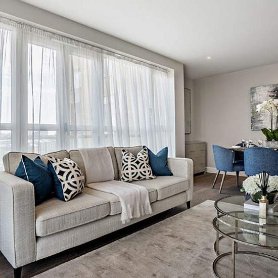 *A video tour is available* A two bedroom, two bathroom apartment situated on the second floor of a waterfront development, located in the iconic Westferry Circus area of Canary Wharf. The property is newly refurbished and arranged over 908 square feet (about 84.36 square metres) and comprises a large reception room with dining area and access to a private balcony, separate fully integrated and fully equipped kitchen, two double bedrooms with fitted cupboards, smart TV sets and king size beds, and two bathrooms (one en-suite with shower and ...