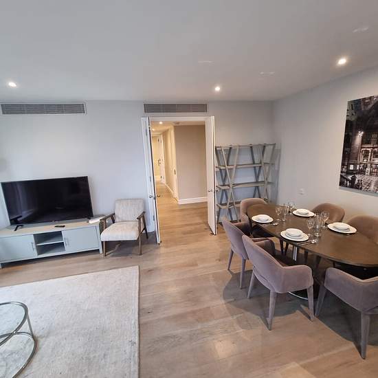 *A video tour is available* A special promotion: A free Virgin Active Gym membership A two bedroom, two bathroom apartment situated on the first floor of a waterfront development, located in the iconic Westferry Circus area of Canary Wharf. The property is newly refurbished and arranged over 973 square feet (about 90.4 square metres) and comprises a large reception room with dining area and access to a private balcony, separate fully integrated and fully equipped kitchen, two double bedrooms with fitted cupboards, smart TV sets and king size...